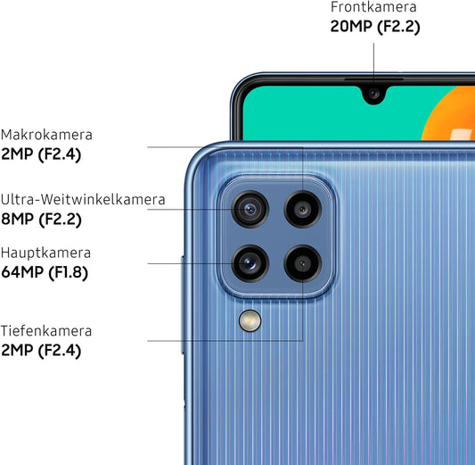 Samsung Galaxy M32 Android smartphone, 6.4-inch Infinity U display, powerful 5,000 mAh battery, 128 GB/6 GB RAM, mobile phone in blue