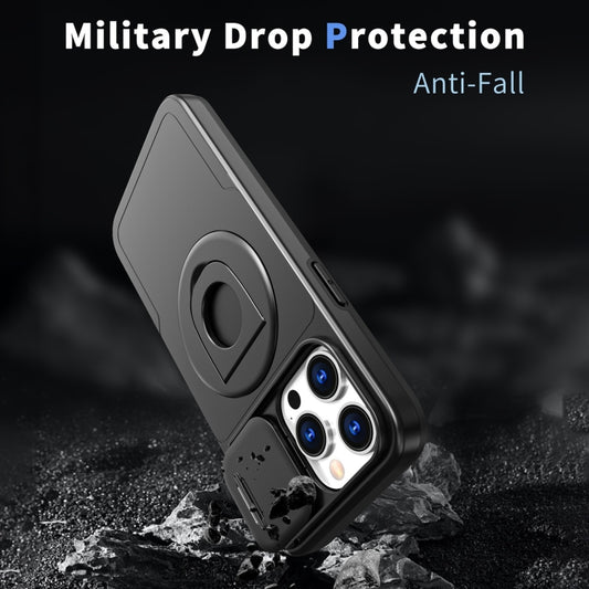 For iPhone 15 Pro Camshield MagSafe Ring Holder Armor Phone Case (Black)