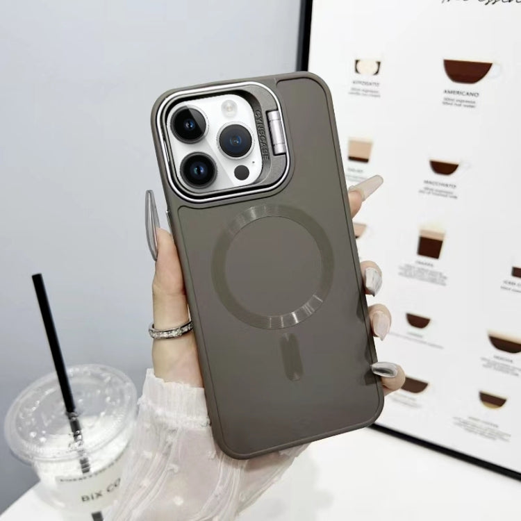 For iPhone 14 Pro Max CD Texture Frosted MagSafe Lens Holder Phone Case (Gray)