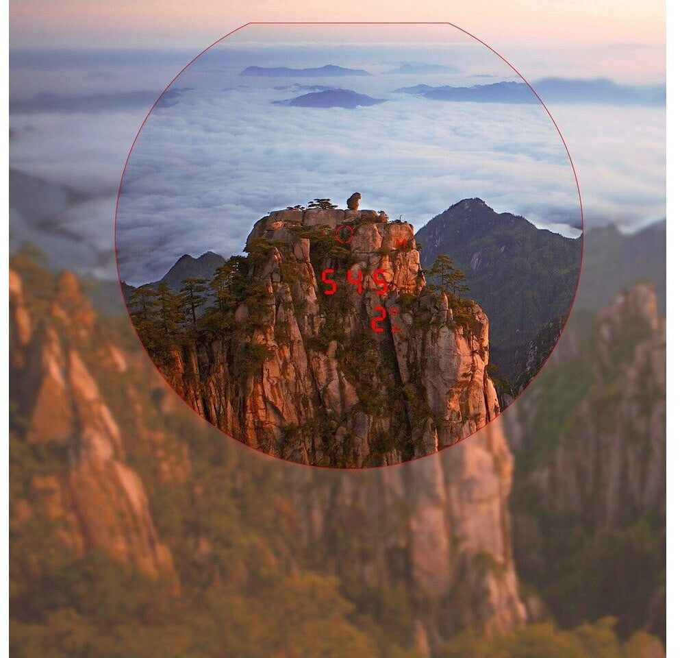 Entfernung in Meter oder Yard – Anzeige in 5 Helligkeitsstufen regelbar